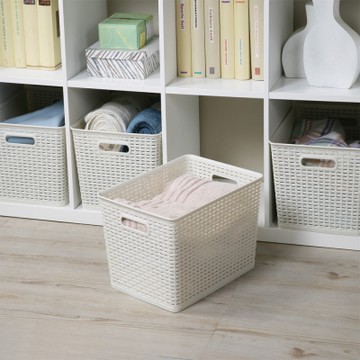 仿編織收納籃 優雅美觀有質感 簍空式設計 透氣不易發霉 省力圓弧把手 40.5 x 29 x 22cm 白色 4個