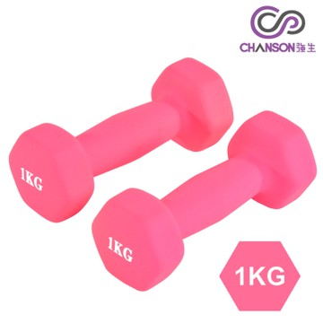 【強生CHANSON】1KG彩色鑄鐵六角啞鈴(2支入)