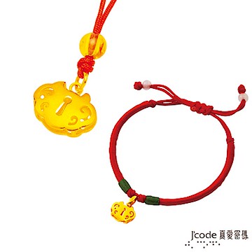 J code真愛密碼金飾 平安鎖黃金中國繩項鍊+平安鎖黃金中國繩手鍊