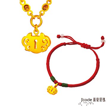 J code真愛密碼金飾 平安鎖黃金項鍊+平安鎖黃金中國繩手鍊