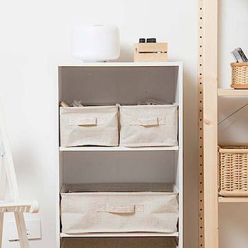 收納部屋 金屬把手棉麻整理盒26L 中(37 x 27 x 26cm) 米色 可折疊收納箱 1個
