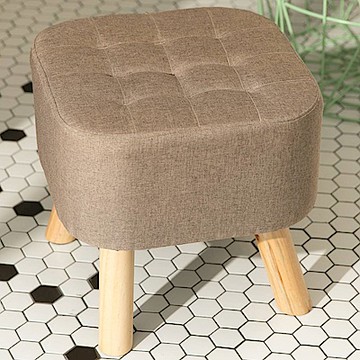 Mega 加厚坐感實木小矮凳 亞麻布 米白色 1個