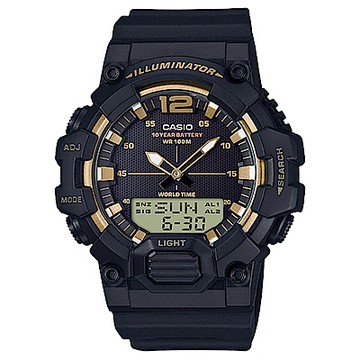 CASIO 經典再現10年電力雙顯電子錶(HDC-700-9A)-黑X金指針/48.8mm / 考試錶