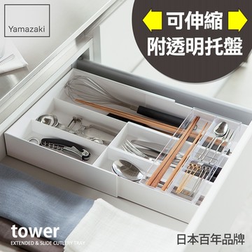 日本【YAMAZAKI】tower伸縮式收納盒(白)文具收納/廚房收納/抽屜收納/餐具收納/多格收納盒