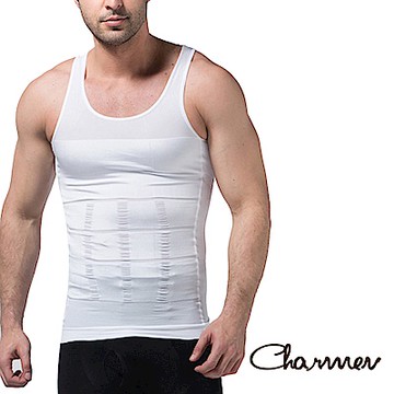 Charmen 菱形加壓彈力網紗收腹透氣背心 - 白色 尼龍88%/彈性纖維12% M