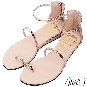 Ann’S極致舒適仙女光澤顯瘦坡跟涼鞋-玫瑰金