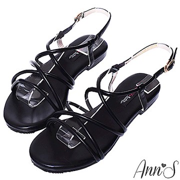 Ann’S層次單品-編織交錯細帶寬版平底涼鞋-黑