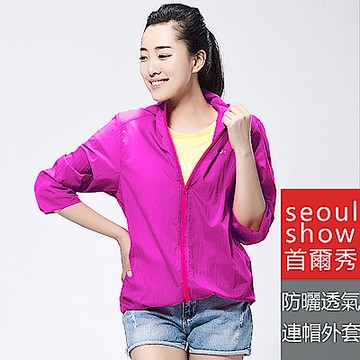 seoul show首爾秀 男女防潑水防曬透氣連帽外套 女款紫色
