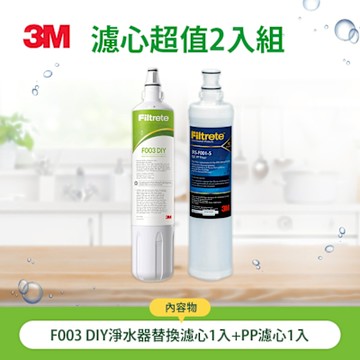 3M F003 DIY淨水器替換濾心1入(適用S003/DS02/DS03系列濾心)+PP濾心1入(超值2入組)
