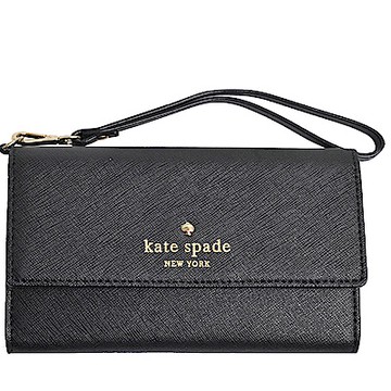 Kate spade 高質感防刮皮革 ACE LOGO 釦式多卡機能手機/手拿包(黑)