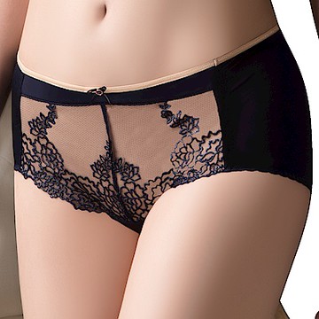 思薇爾 午夜巴黎系列M-XL蕾絲刺繡中低腰平口內褲(深魅藍)