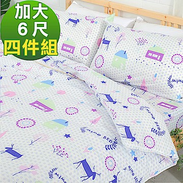 米夢家居-原創夢想家園-100%精梳棉印花床包+雙人兩用被套四件組-白日夢-雙人加大6尺