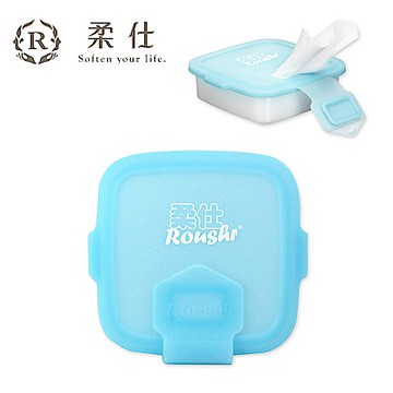 【Roaze 柔仕】專利矽膠抽取盒 + 乾濕兩用布巾(20片) - 艾莎藍