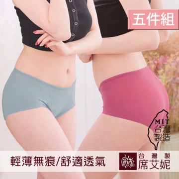 席艾妮SHIANEY 台灣製造(5件組)冰絲纖維舒適中低腰 無痕內褲 素面款