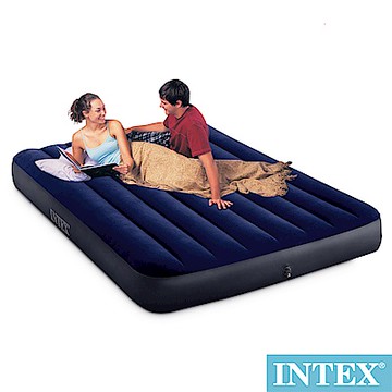 INTEX 露營充氣床墊 單人款 PVC+絨布材質 191 x 99 x 25cm 藍色