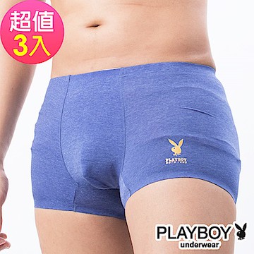 PLAYBOY 兔頭LOGO素面裸感無痕合身四角褲平口褲(3件組)
