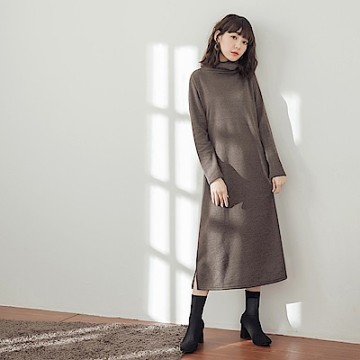 復古法蘭絨襯衫連衣裙 | 純棉磨毛立領繫帶設計 | 中長款三季實穿