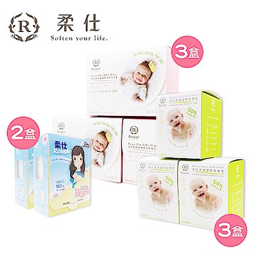 Roaze 柔仕 MIT多用途布巾組合 (擦澡巾X3盒+160片布巾X3盒+清淨棉X2盒)