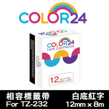 Color24 for Brother TZe-232 白底紅字相容標籤帶(寬度12mm)