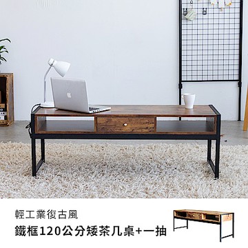 【Amos】輕工業復古風鐵框120公分矮茶几桌+一抽