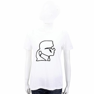 Karl Lagerfeld Lightning 白色老佛爺黑側臉肖像短袖T恤