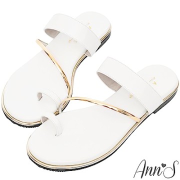 【現貨出清】氣質純色線條拼接金屬釦圓頭平底涼鞋.白鳥麗子