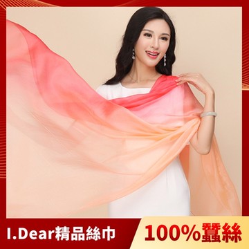 I.Dear-100%蠶絲頂級真絲素色漸層披肩/絲巾(紅色漸層)