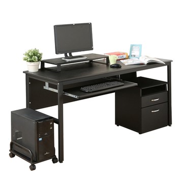DFhouse 頂楓150公分電腦辦公桌+主機架+活動櫃-黑橡木色