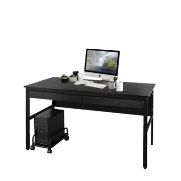 DFhouse巴菲特電腦辦公桌+雙抽屜+主機架-黑橡色 150*60*76