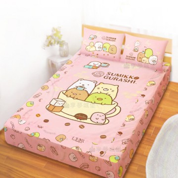 享夢城堡 單人床包枕套3.5x6.2二件組-角落小夥伴 咖啡杯-粉.黃