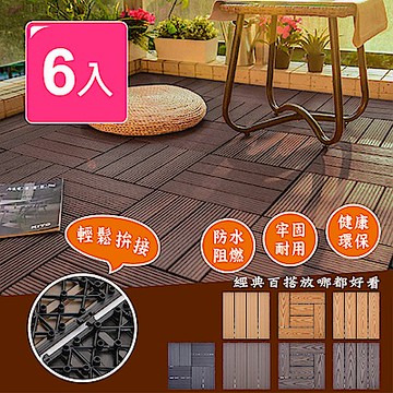 【Meric Garden】環保防水防腐拼接塑木地板6入/組 (直條紋款柚木色)