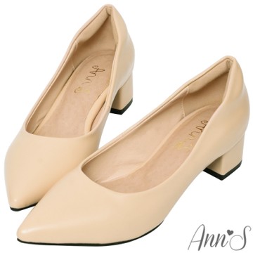 Ann’S加上優雅低跟版-莫蘭迪色素面沙發後跟尖頭鞋-杏