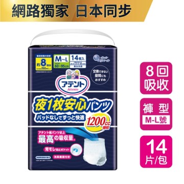 日本大王 Attento愛適多夜間超安心褲型強效_8回吸收 M~L (14片/包)