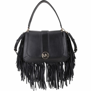 Michael Kors Lillie 皮革編織流蘇手提/肩背包(黑色)