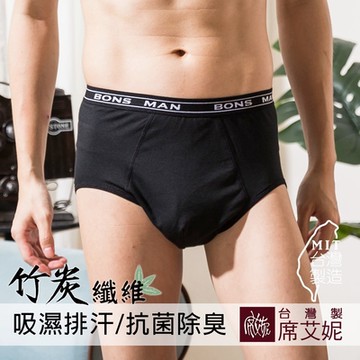 席艾妮SHIANEY 台灣製造 男性竹炭纖維平口內褲 透氣 抗菌 除臭 (黑)