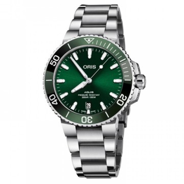 Oris 豪利時 Aquis 時間之海潛水300米日期機械錶-綠水鬼x銀/39mm 0173377324157-0782105PEB