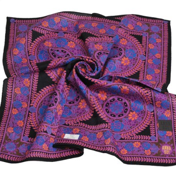 ANNA SUI 繽紛幾何玫瑰花圖騰字母LOGO大帕領巾(黑底)