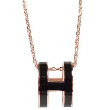 HERMES 愛馬仕 H POP款LOGO圓弧型項鍊(玫瑰金/黑)