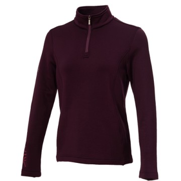 【WILDLAND荒野】女彈性立領拉鍊印花保暖衣07酒紅色