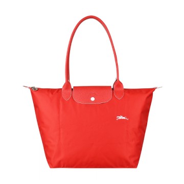 LONGCHAMP LE PLIAGE GREEN系列刺繡長把再生尼龍摺疊水餃包(大/番茄紅)_廠商直送