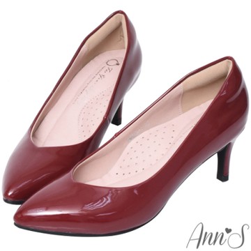 Ann’S魔術軟漆V口顯瘦低跟尖頭包鞋-紅