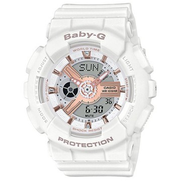 BABY-G 柔美玫瑰金設計休閒運動雙顯錶-白(BA-110XRG-7A)/43.4mm
