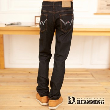 簡約繡線原色造型 質感單寧休閒長褲 添加舒適彈性纖維