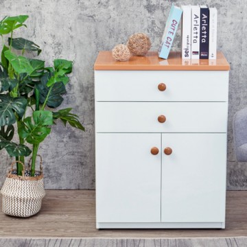 Birdie南亞塑鋼-防水2.1尺二抽二門塑鋼收納櫃/窗邊置物櫃/組合櫃(白色+原木色)-63x36.5x84cm