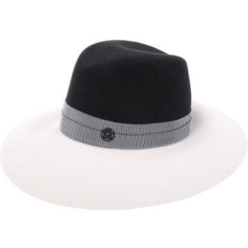 Maison Michel VIRGINIE 撞色綢緞織帶兔毛氈寬檐軟呢帽(黑x白)
