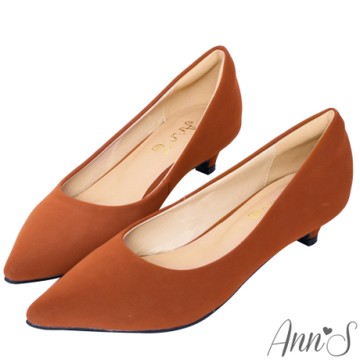 Ann’S每日優雅-小羊皮圓頭粗跟全真皮包鞋5cm-白