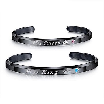 I.Dear飾品西德鋼-國王皇后-簡約英文字母QREEN與KING鈦鋼手鐲黑色AE27