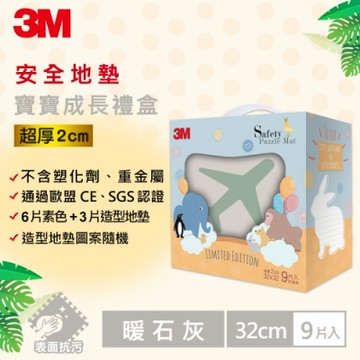 美國 3M - 安全巧拼地墊禮盒 2入組-暖石灰+晨霧綠 (32*32*2公分)-一入9片[6片素色+3片動物造型] 內附收...