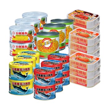 台糖 罐頭超值10件組(蕃茄汁鯖魚黃罐/蕃茄汁鯖魚紅罐/玉米粒/鳳梨罐/紅燒鰻/豆豉紅燒鰻)
