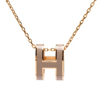 Hermes MINI POP立體H字鏤空設計項鍊(灰x粉紅金)